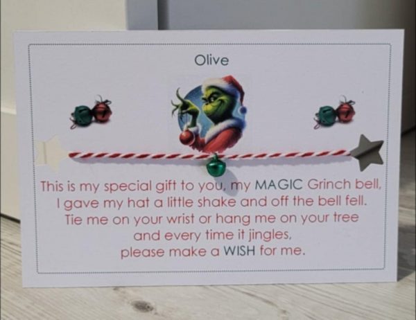 Handmade Personalised Grinch Christmas Bell Wish Bracelet