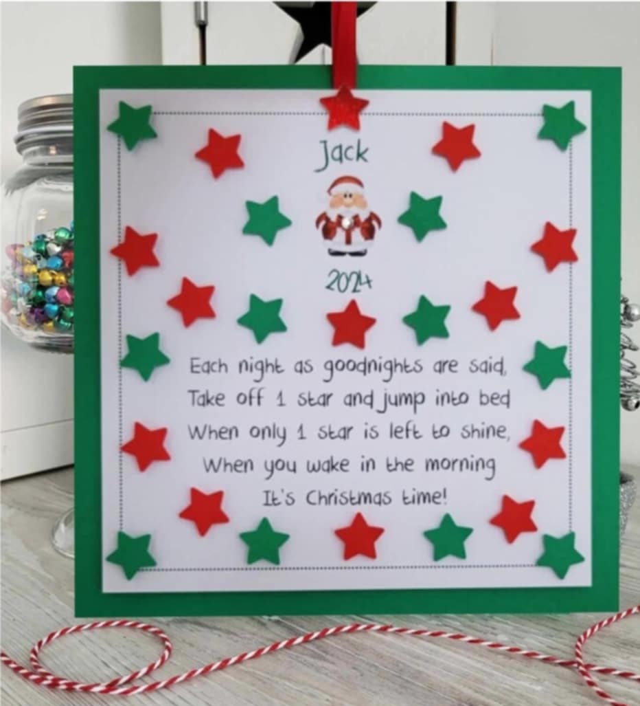 Personalised Children’s Christmas Countdown Advent Calendar 2024 – Remove a star each night & count the sleeps to Xmas.