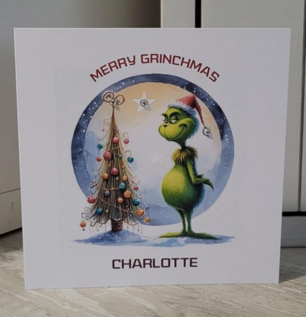 This personalised XMAS Tree Grinch Card, to celebrate and send to your friends and family this Christmas.